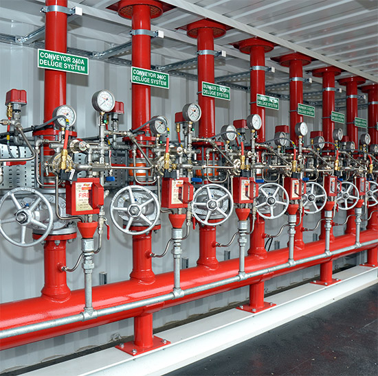 Water is not present in the piping until the system operates. Because the sprinkler orifices are open, the piping is at atmospheric pressure. To prevent the water supply pressure from forcing water into the piping, a “deluge valve” is used in the water supply connection, which is a mechanically latched valve. It is a non-resetting valve, and stays open once tripped.